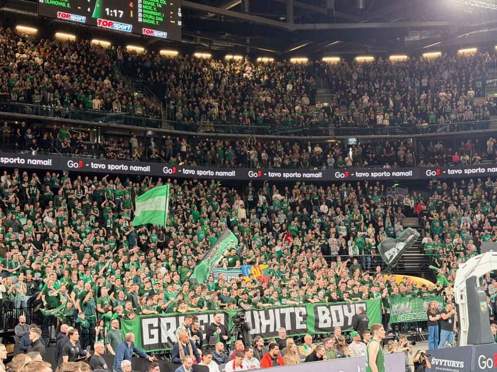 R. Kubiliaus nuotraukoje – 2026 m. vasario 13 d. ŽALGIRIO arenoje ŽALGIRĮ palaikę sirgaliai pergalingoje kovoje su Tel Avivo Hapoel patyrė tik teigiamas emocijas.